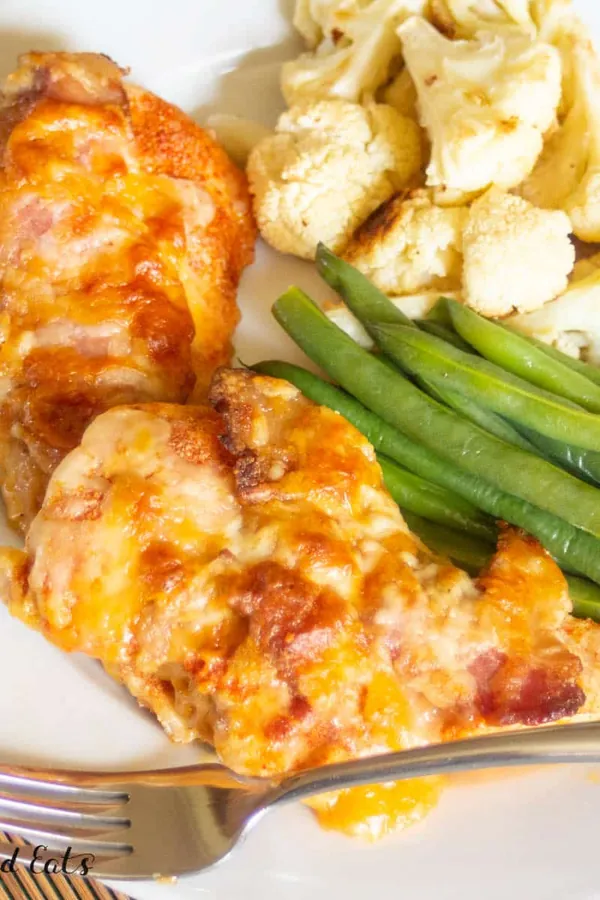 Juicy chicken breasts wrapped in bacon and full of savory taste.