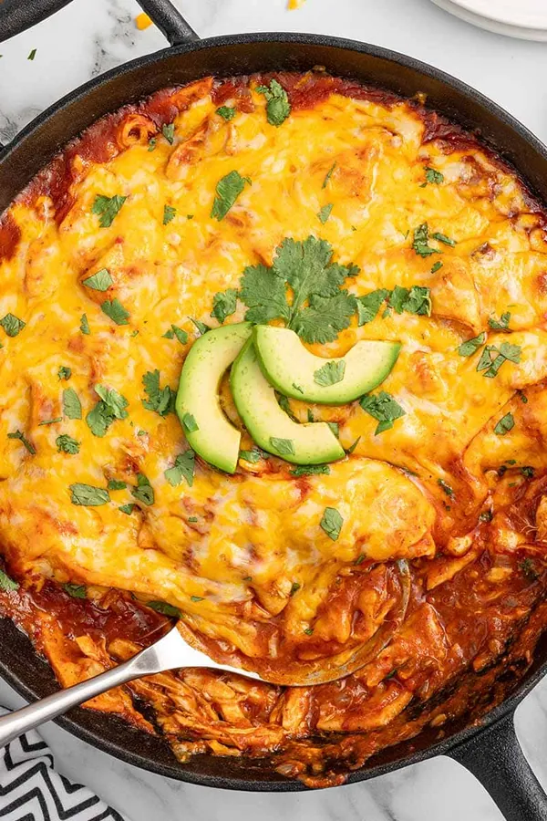 Skillet Enchiladas bring all the classic flavors in one pan — no rolling or stuffing required.