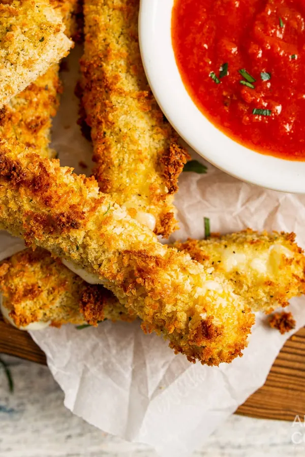 Air fryer mozzarella sticks turn out perfectly crispy and melty in just five minutes.