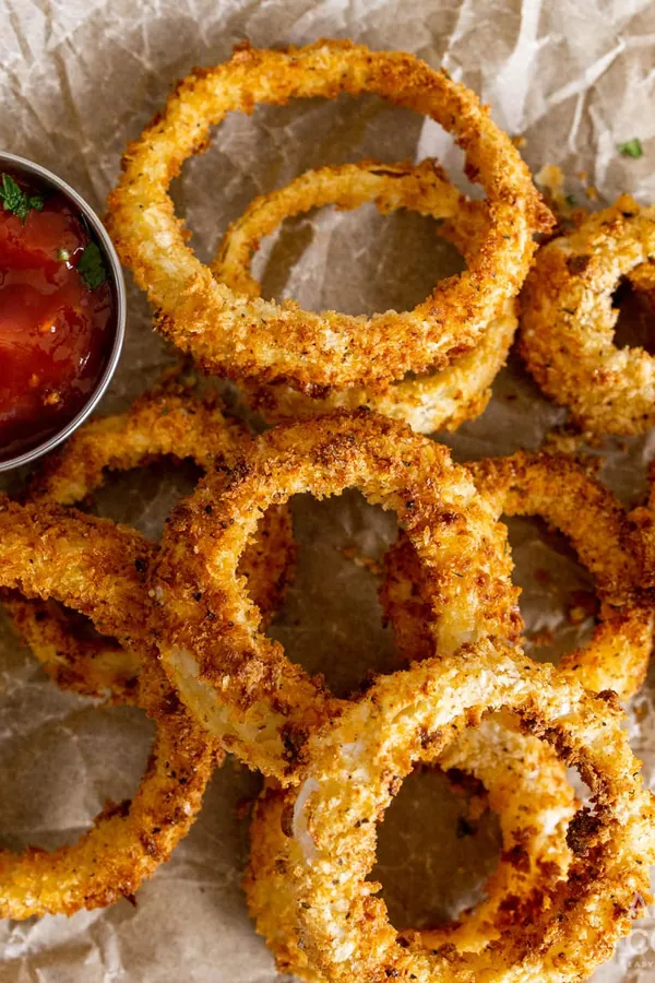 Air fryer onion rings need no oil and are ready in just 10 minutes.
