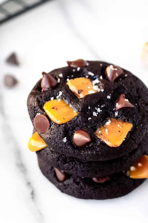 Dark Chocolate Chip Salted Caramel Cookies are chewy, rich, and perfect for chocolate lovers.