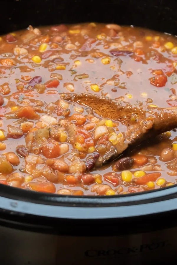 Slow Cooker Vegetarian Cajun 15 Bean Soup brings together a colorful mix of beans, corn, and bold Cajun spices.