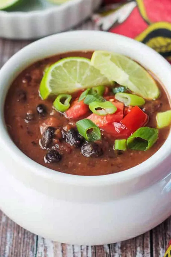 Vegan Black Bean Soup is a quick, hearty meal loaded with beans, veggies, and spices.