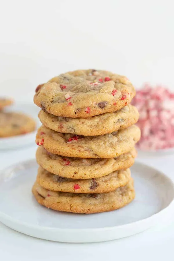 Peppermint Chocolate Chip Cookies are soft, chewy, and full of festive flavor.