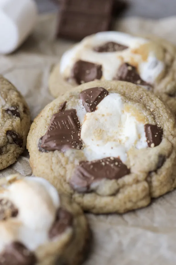 Sourdough S’mores Cookies capture the campfire spirit with graham cracker pieces, melted chocolate, and toasted marshmallows.