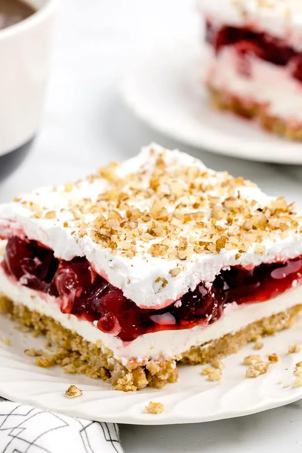 It combines creamy cheesecake, sweet cherry pie filling, and a crunchy graham cracker crust for a refreshing treat.