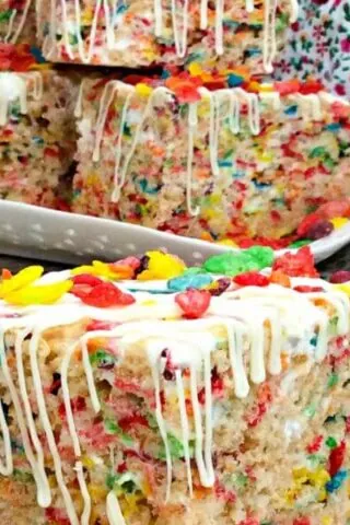 Fruity Pebbles Rice Krispie Treats bring colorful fun to every bite with a sweet, crunchy twist.