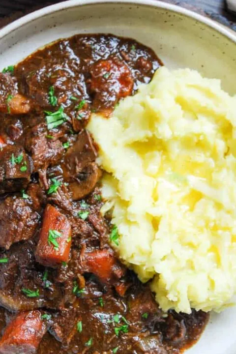 It’s a robust, flavorful stew that pairs perfectly with creamy mashed potatoes.
