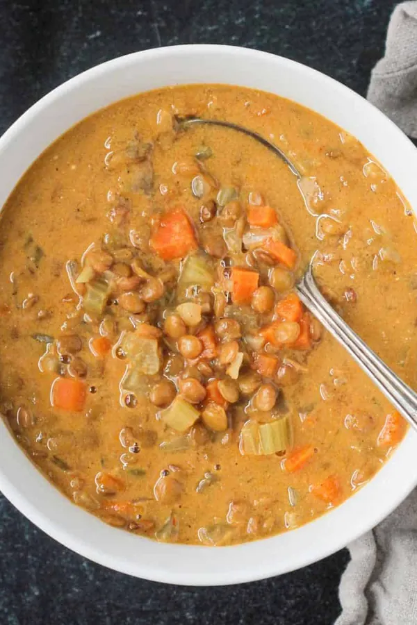 Curried Carrot Lentil Soup delivers a cozy blend of sweet carrots, earthy lentils, and creamy coconut milk.