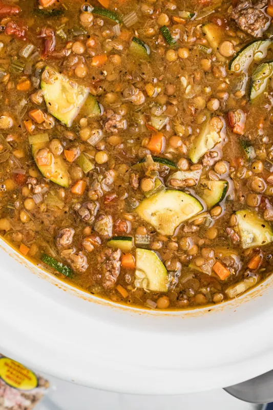 Slow Cooker Sausage Lentil Soup delivers a rich, savory taste with tender lentils, juicy sausage, and aromatic herbs.