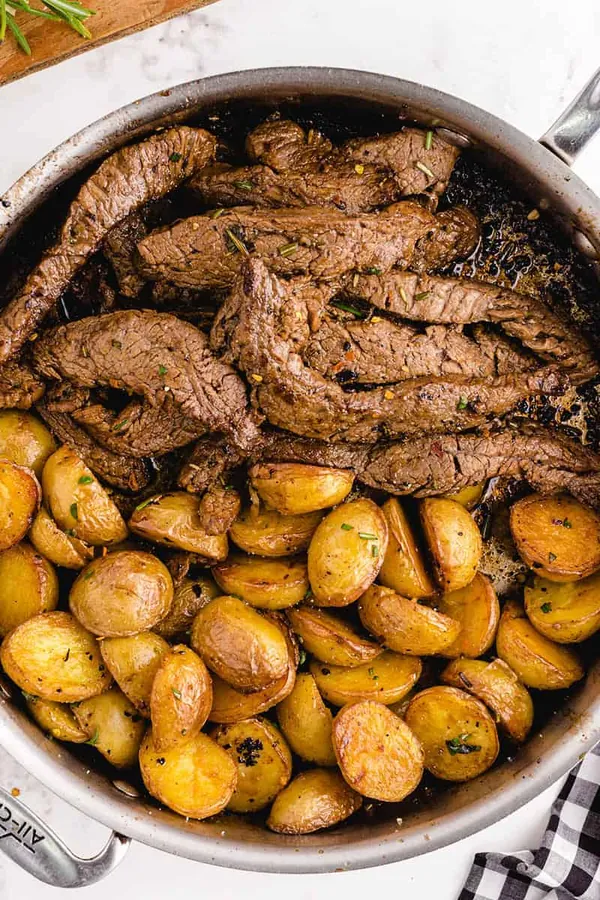 Garlic Butter Steak and Potatoes Skillet combines juicy steak and crispy roasted potatoes in one pan.