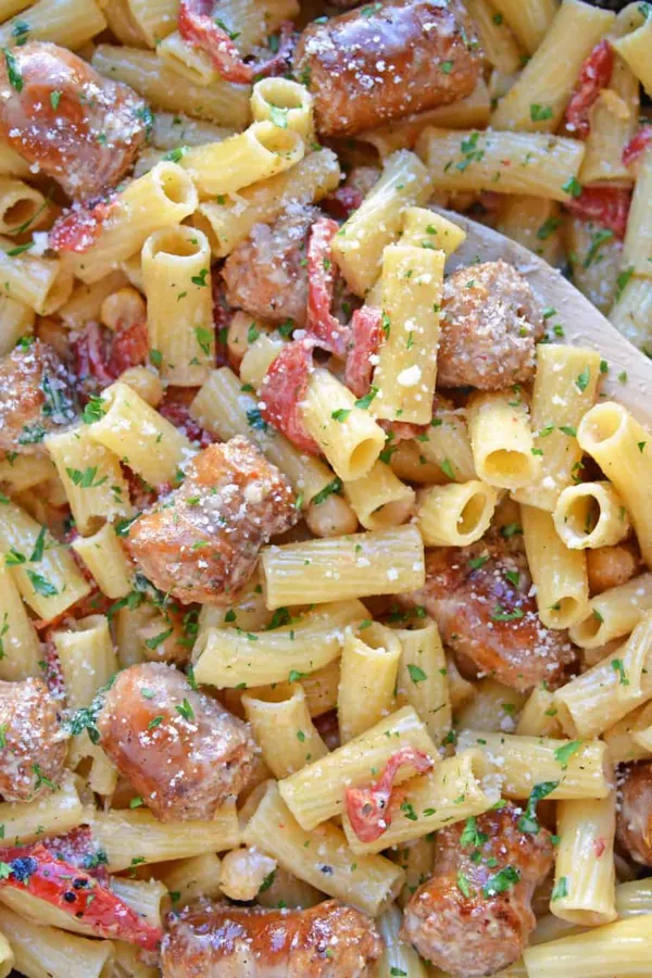 One Pan Sausage Alfredo combines tender pasta, spicy sausage, and a creamy homemade alfredo sauce.