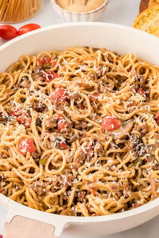 One-Pan Spaghetti means no extra pots or dishes—just pasta simmered in flavorful sauce.