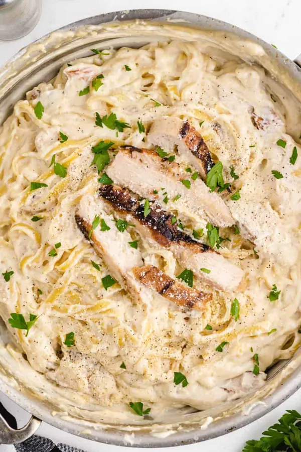 Creamy Alfredo sauce, tender chicken, and al dente fettuccini all come together in one pan.