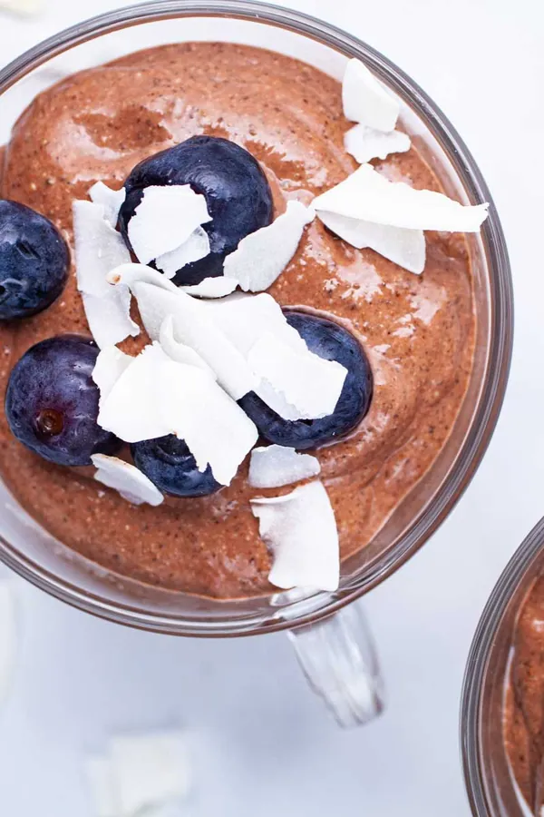 This smooth blended chocolate chia mousse tastes like dessert but is light enough for breakfast.
