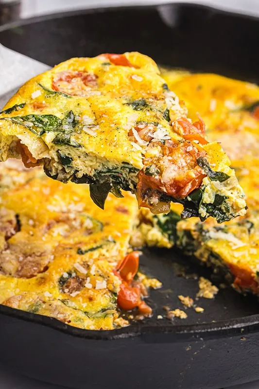 The Spinach Tomato Frittata is a hearty, savory breakfast or brunch dish with rich flavors from tomatoes, spinach, and cheese.