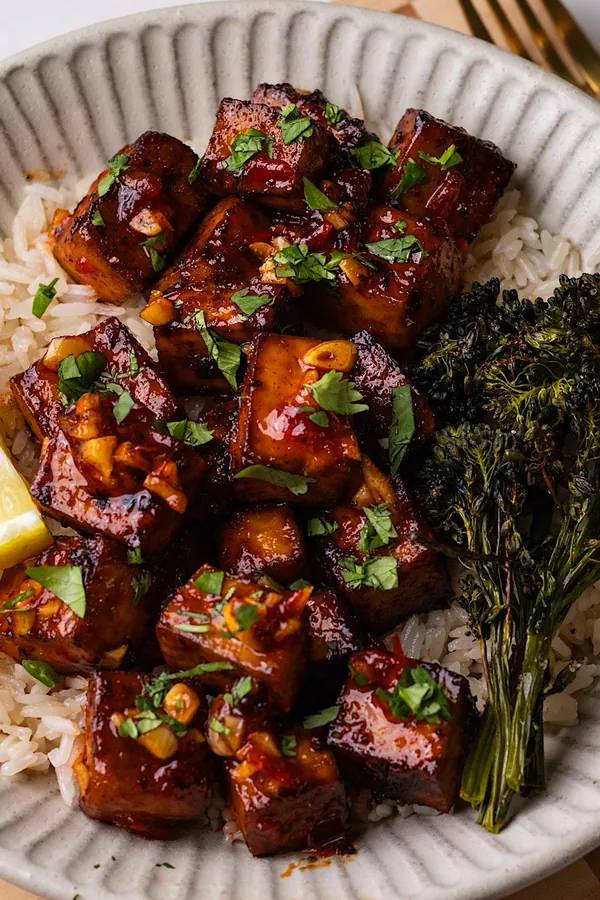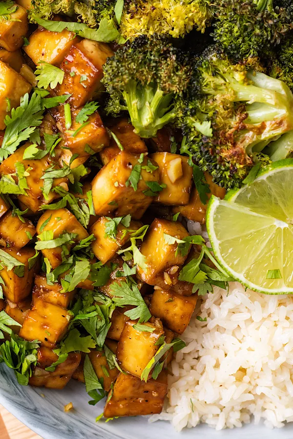 21. Ginger Honey Tofu Bowls with Broccoli