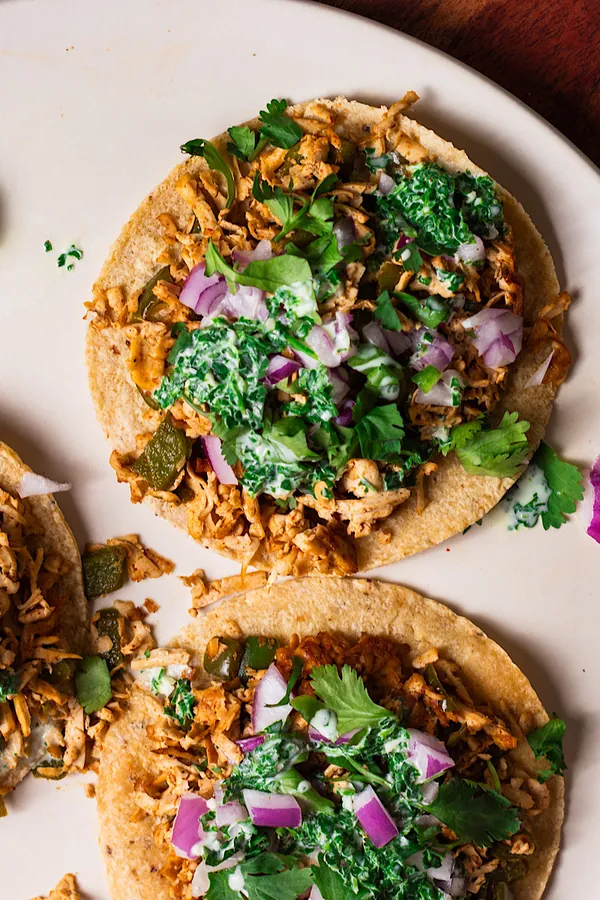 8. Shredded Tofu Tostadas with Cilantro Yogurt Sauce
