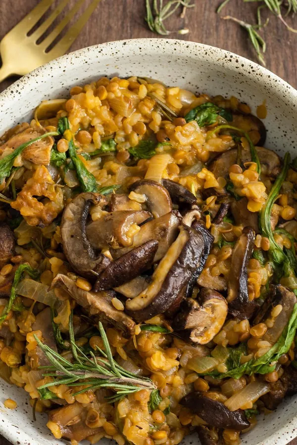 22. vegan high protein mushroom lentil risotto